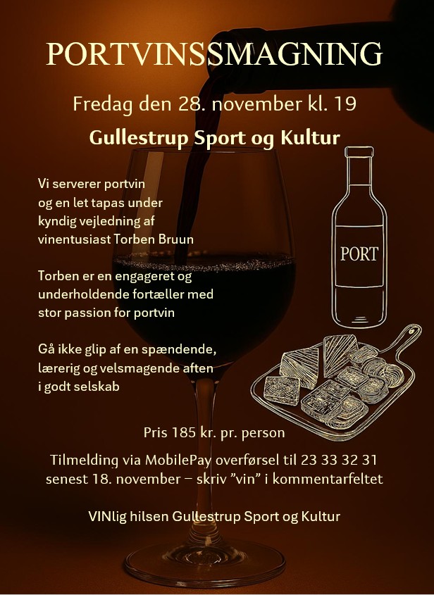 En hyggelig aften med portvinssmagning – Fredag d. 28. nov. 2025 kl. 19.00